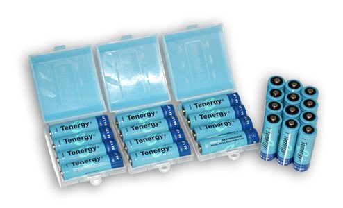 - 24 pcs Tenergy AAA 1000mAh High Capacity NiMH Rechargeable Batteries with 6 FREE Holders